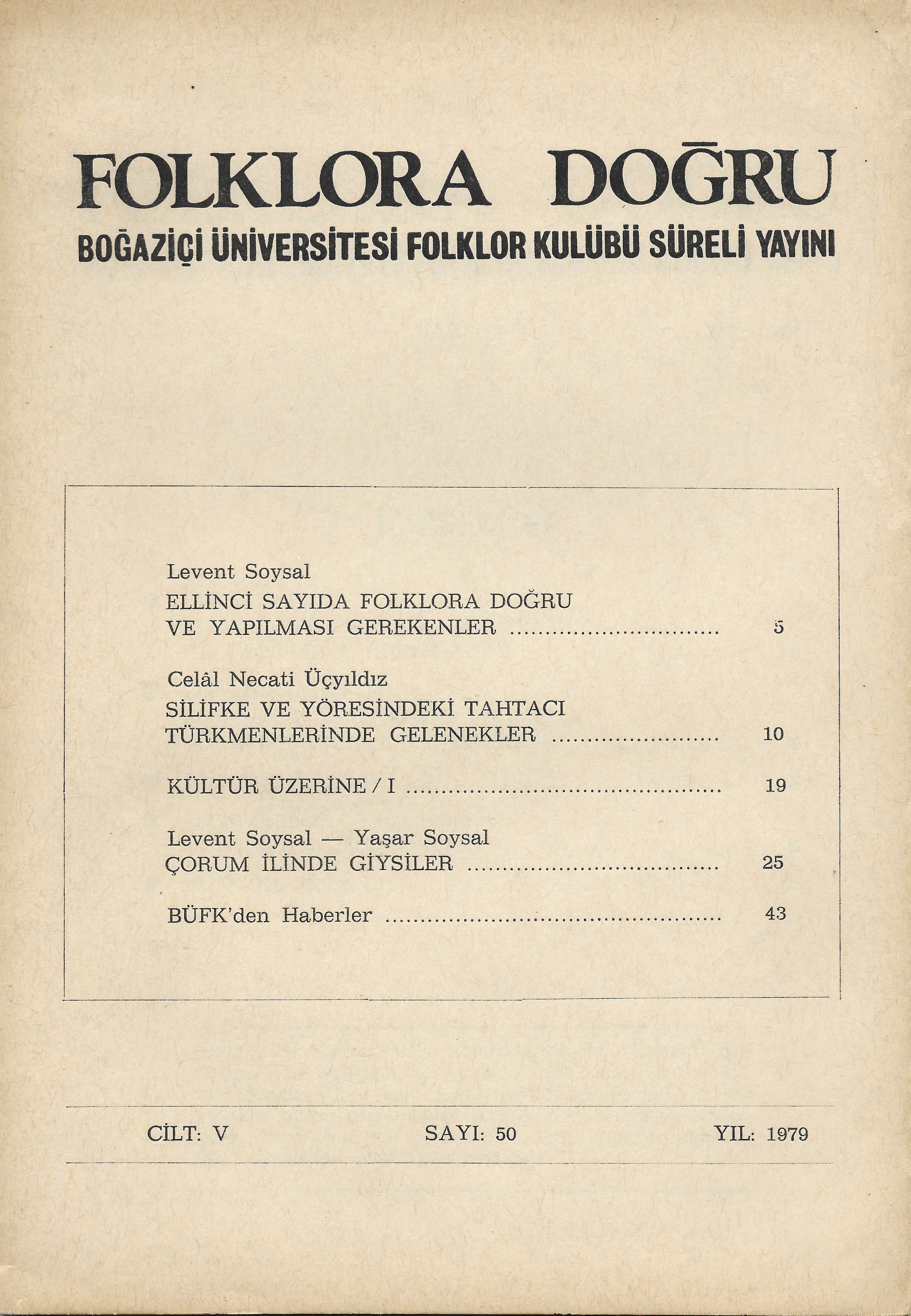 * Dergi Adı: Folklora Doğru * Basım Tarihi: 1979 * Cilt: 5 * Sayı: 50 * Arşivimizde Mevcut Mu? : Var |