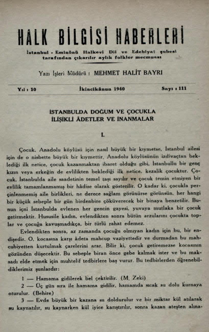 | İstanbulda Doğum ve Çocukla İlişkili Âdetler ve İnanmalar I. | Bayrı,Mehmet Halit | 49 |