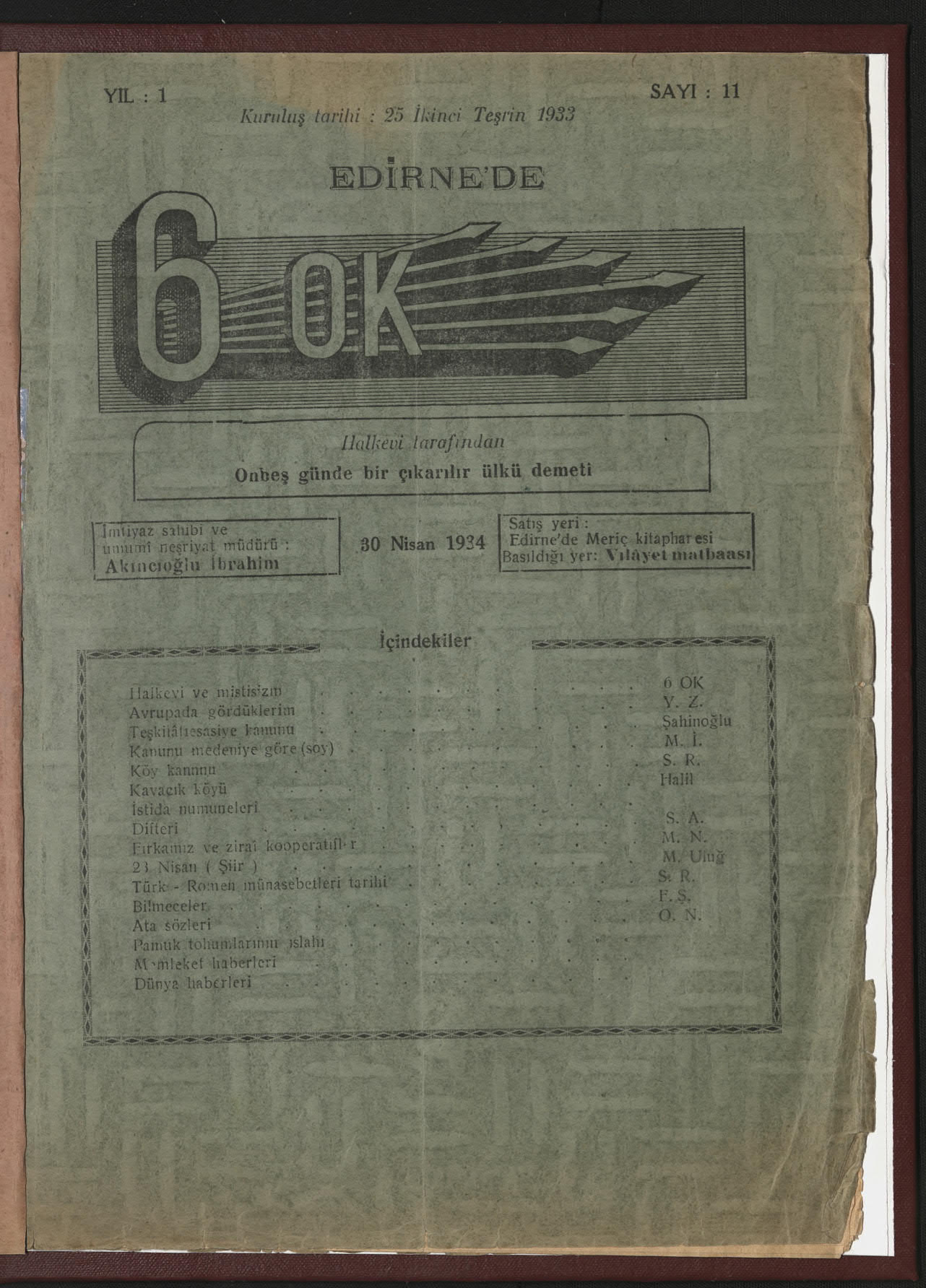 6 Ok (Edirne Halkevi Dergisi)