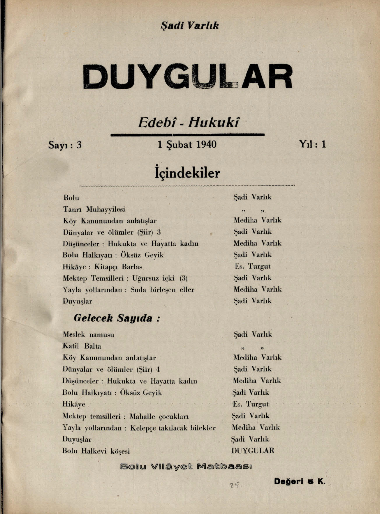 Duygular (Bolu Halkevi Dergisi) [*]