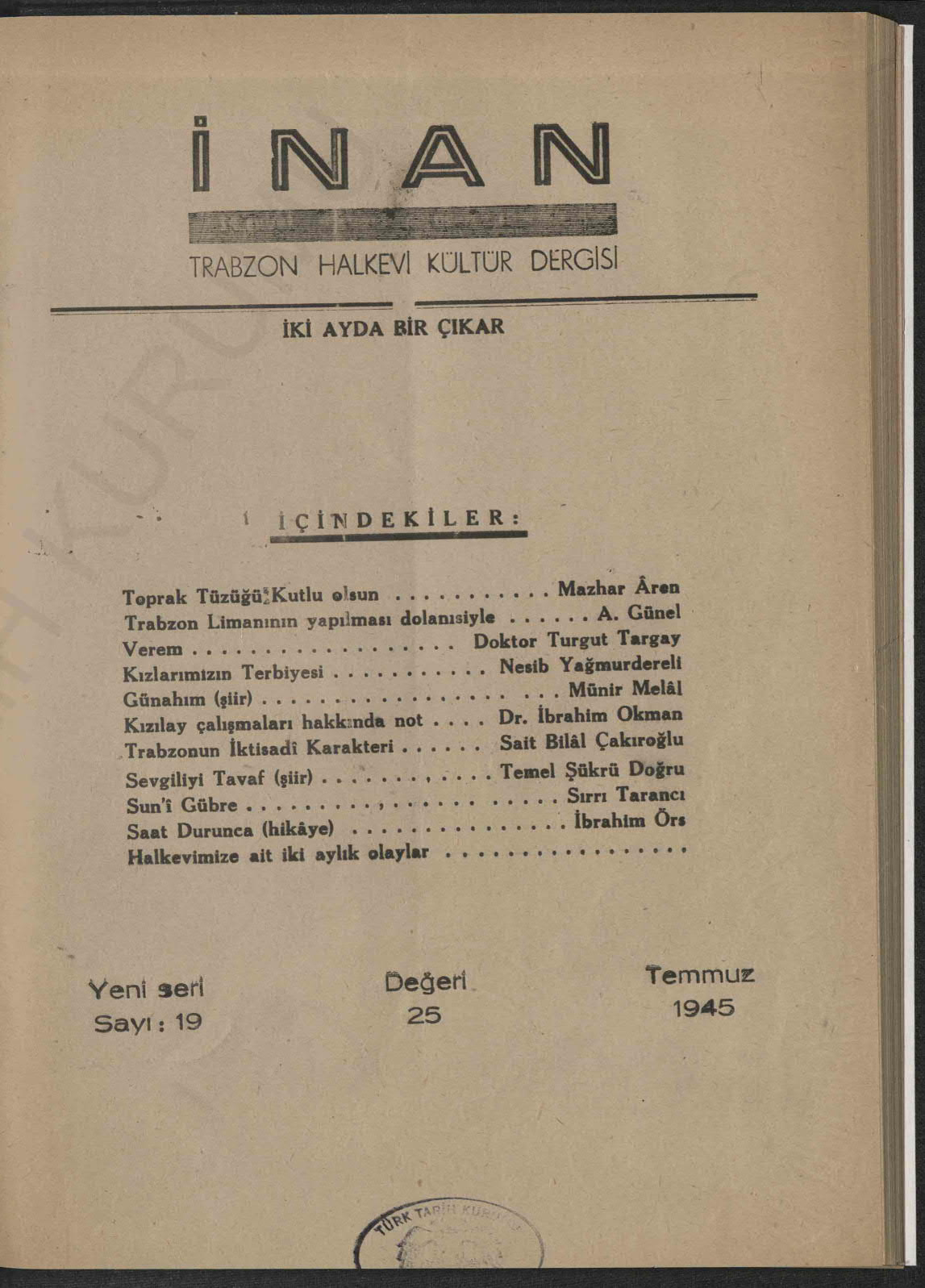 İnan - Yeni Seri (Trabzon Halkevi Dergisi)