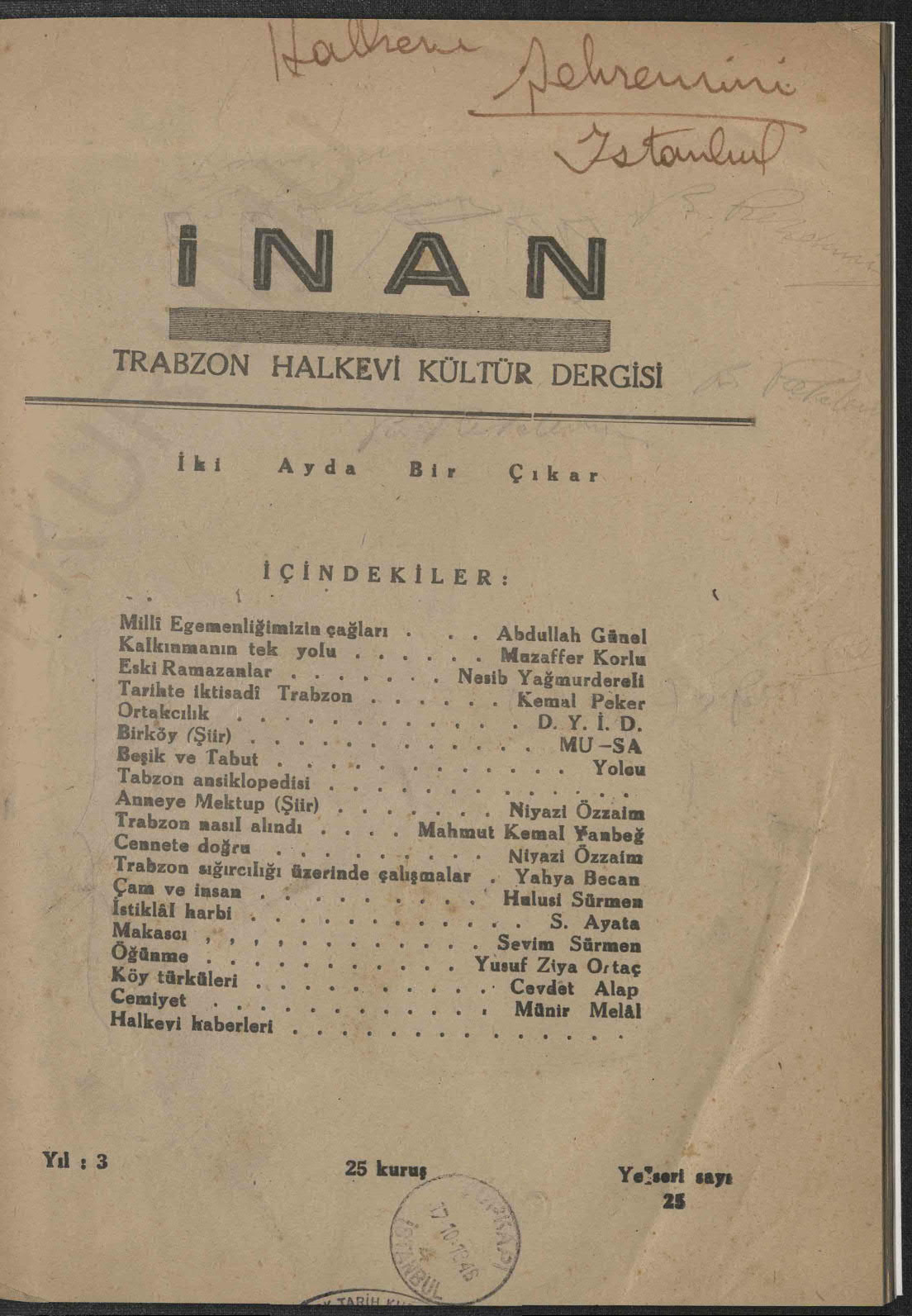 İnan - Yeni Seri (Trabzon Halkevi Dergisi)