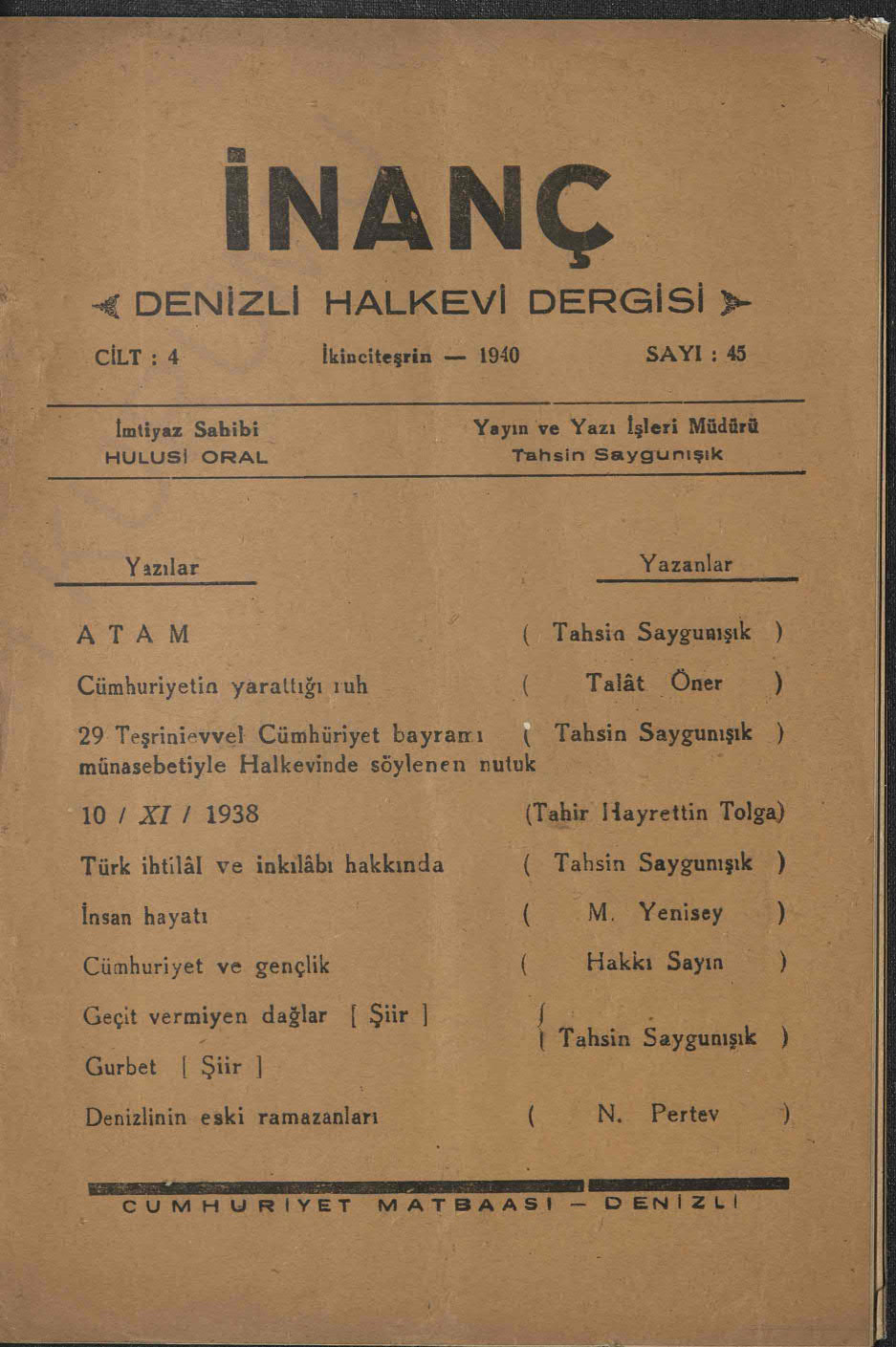 İnanç (Denizli Halkevi Dergisi)