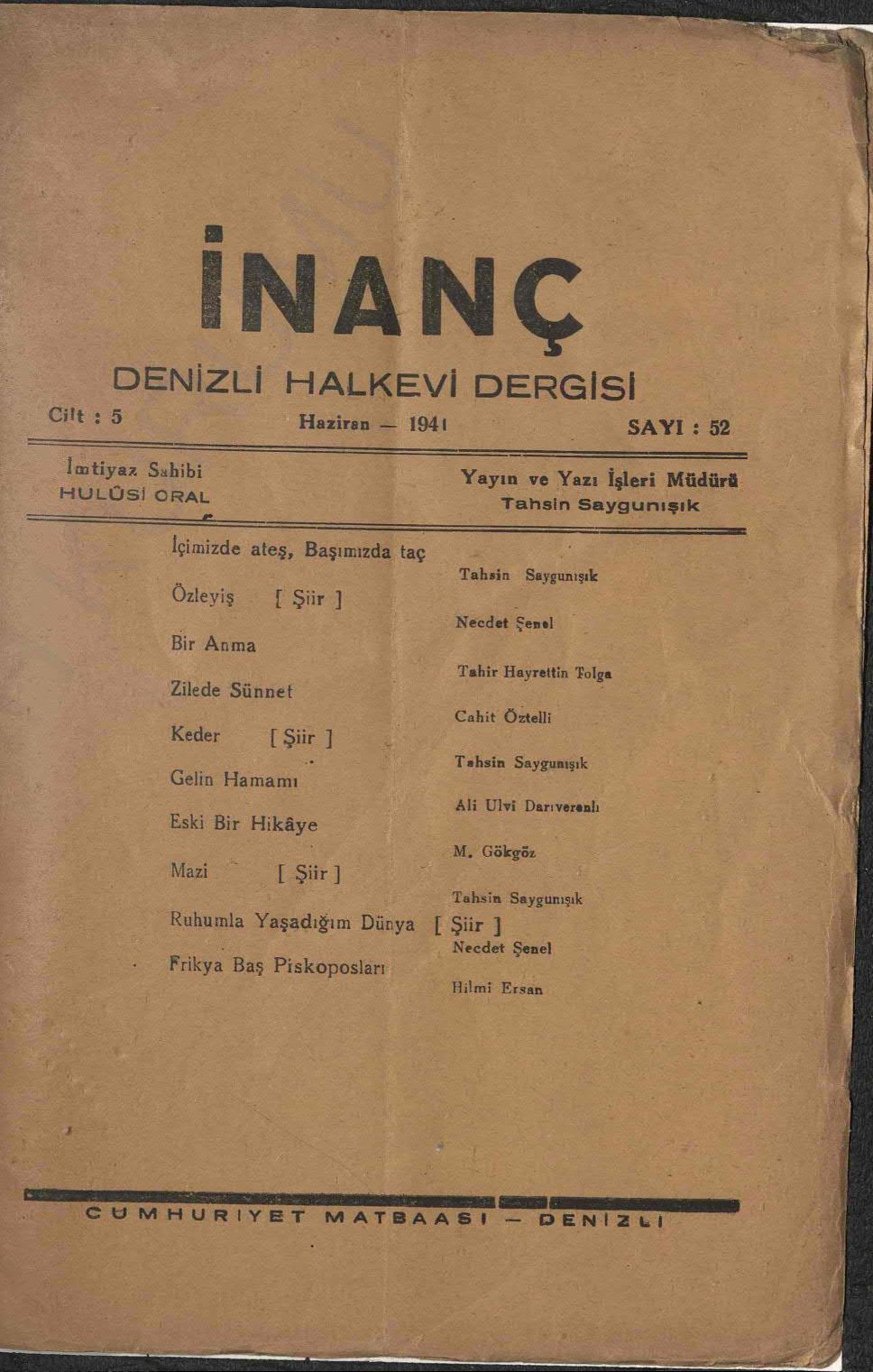 İnanç (Denizli Halkevi Dergisi)