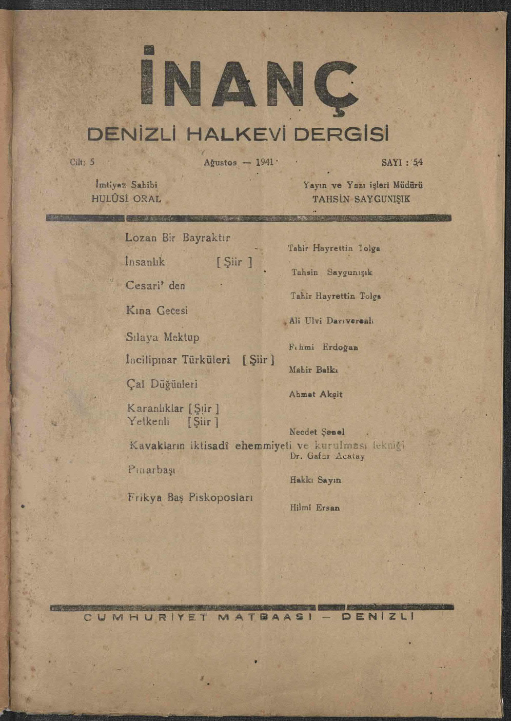 İnanç (Denizli Halkevi Dergisi)