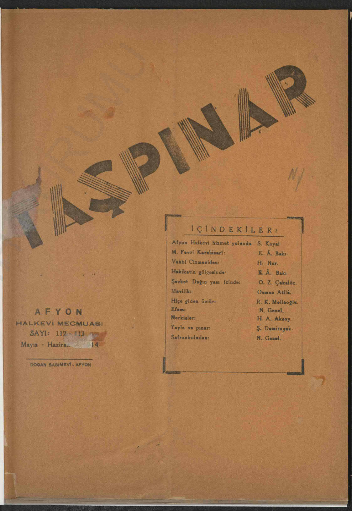 Taşpınar (Afyonkarahisar Halkevi Dergisi)