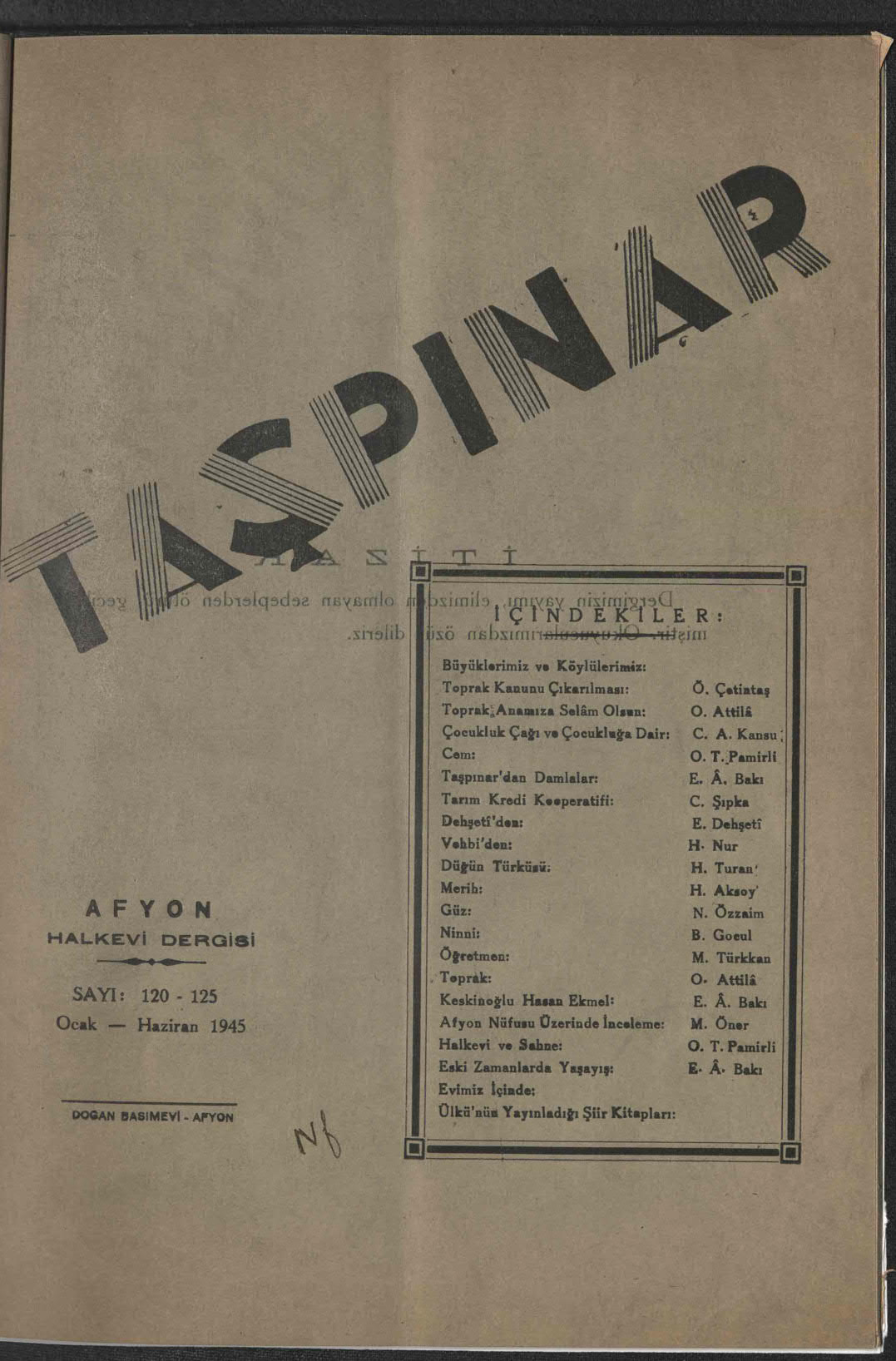 Taşpınar (Afyonkarahisar Halkevi Dergisi)