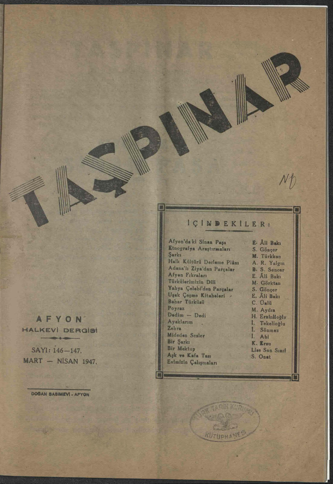Taşpınar (Afyonkarahisar Halkevi Dergisi)