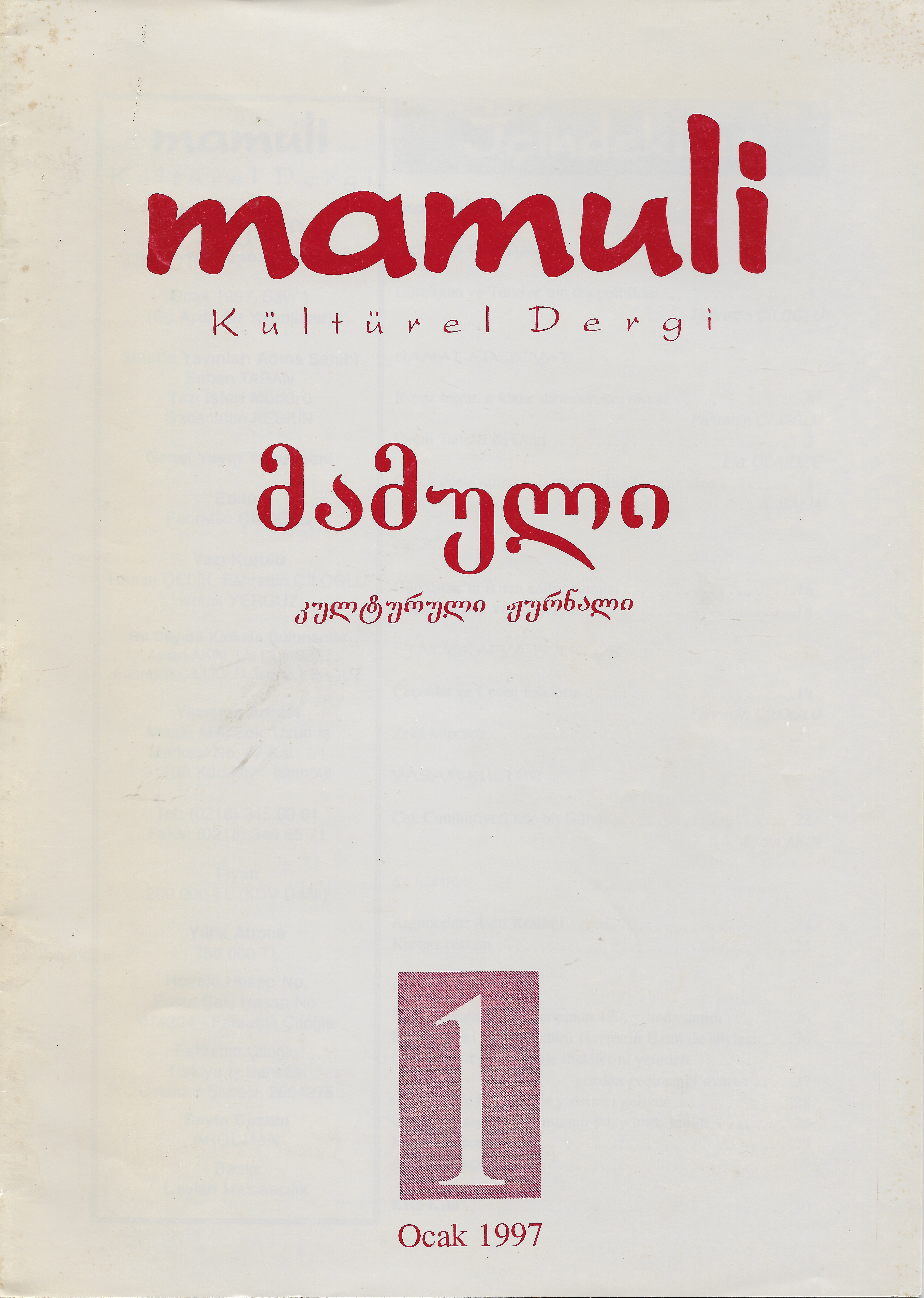 * Dergi Adı: Mamuli [*] * Basım Tarihi: Ocak 1997 * Yıl: 1 * Sayı: 1 * Arşivimizde Mevcut Mu? : Var |