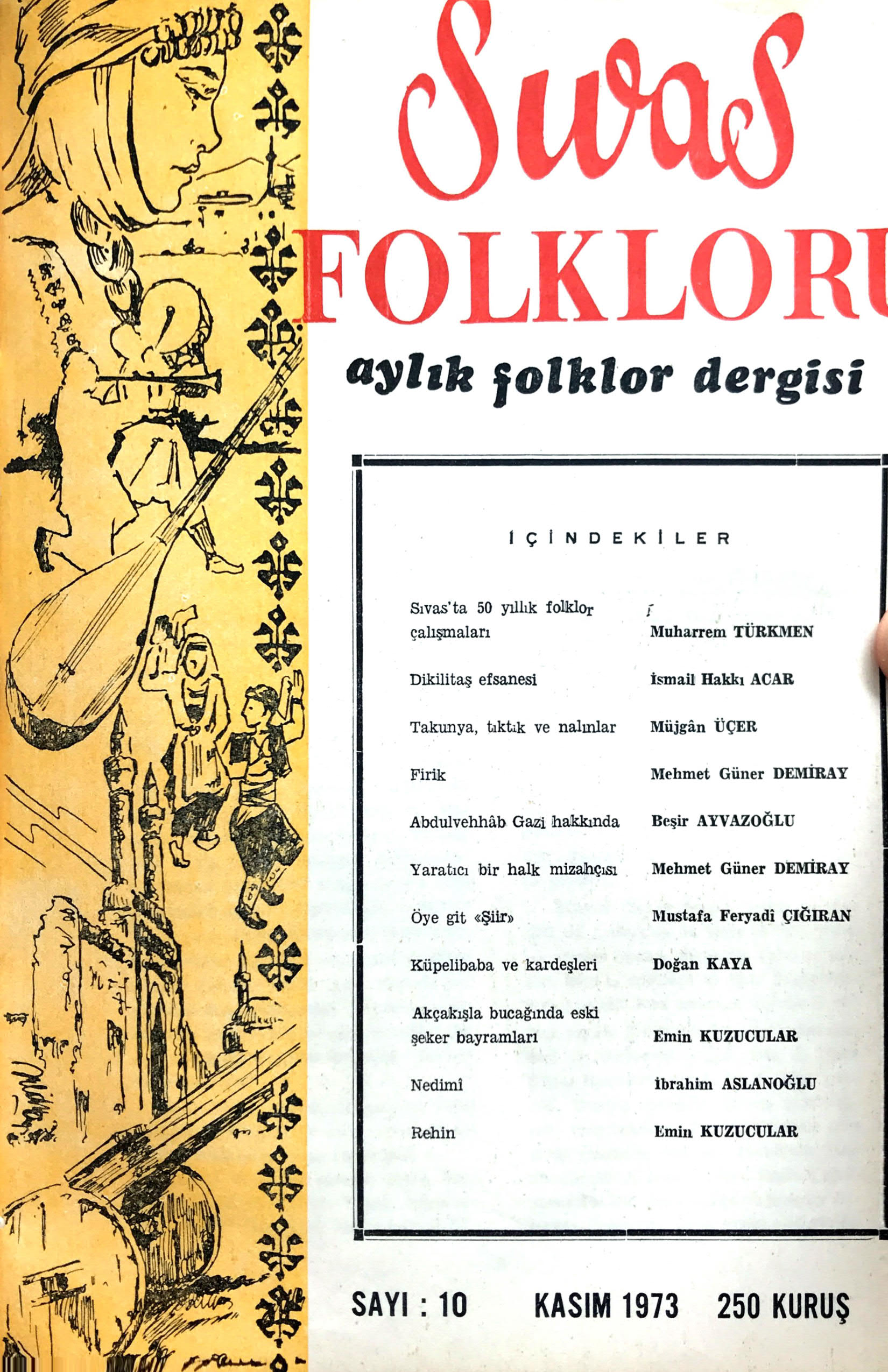 * Dergi Adı: Sivas Folkloru * Basım Tarihi: Kasım 1973 * Yıl: 1 * Sayı: 10 * Fiyat: 250 Kuruş * Derginin Sloganı: Aylık Folklor Dergisi * Arşivimizde Mevcut Mu? : Yok |