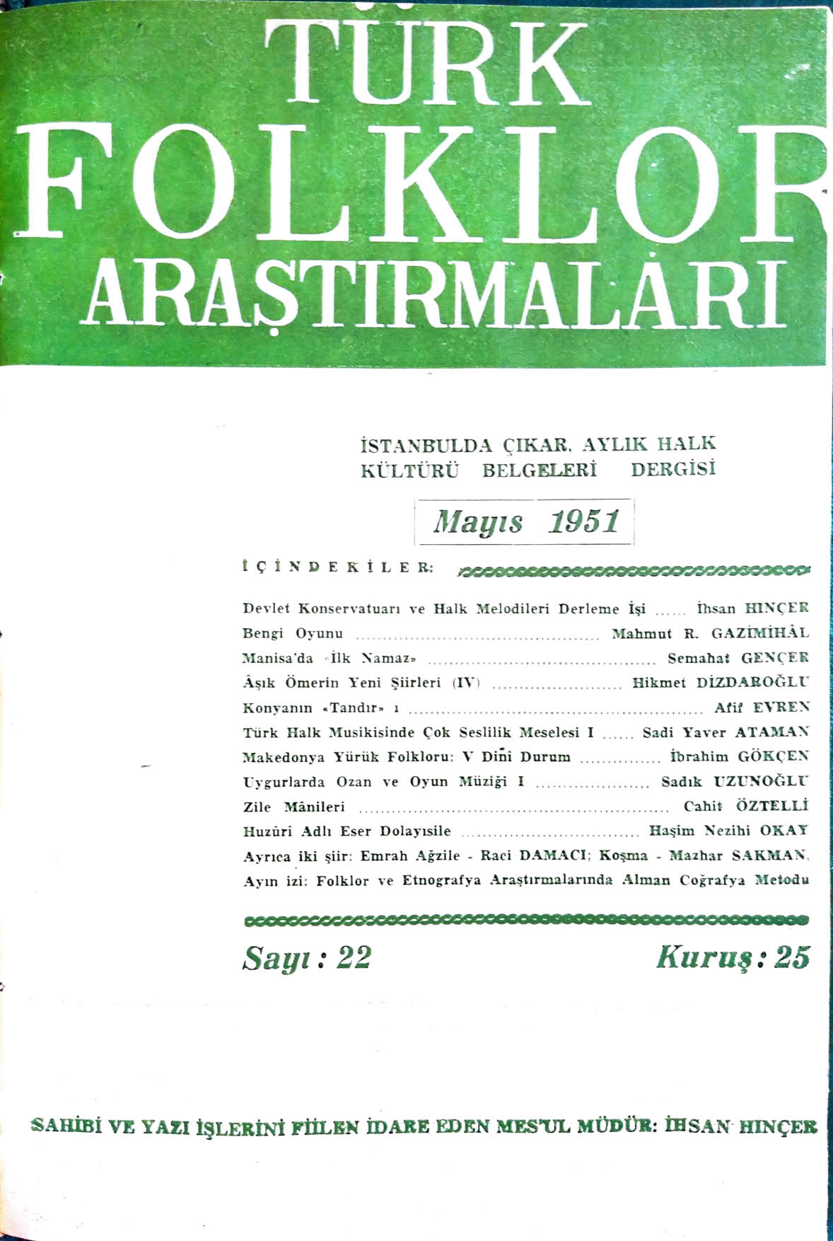 | Kuruluşunun 15. Yıldönümü Münasebetile - Devlet Konservatuarı ve Halk Melodileri Derleme İşi | Hınçer,İhsan | 337 |