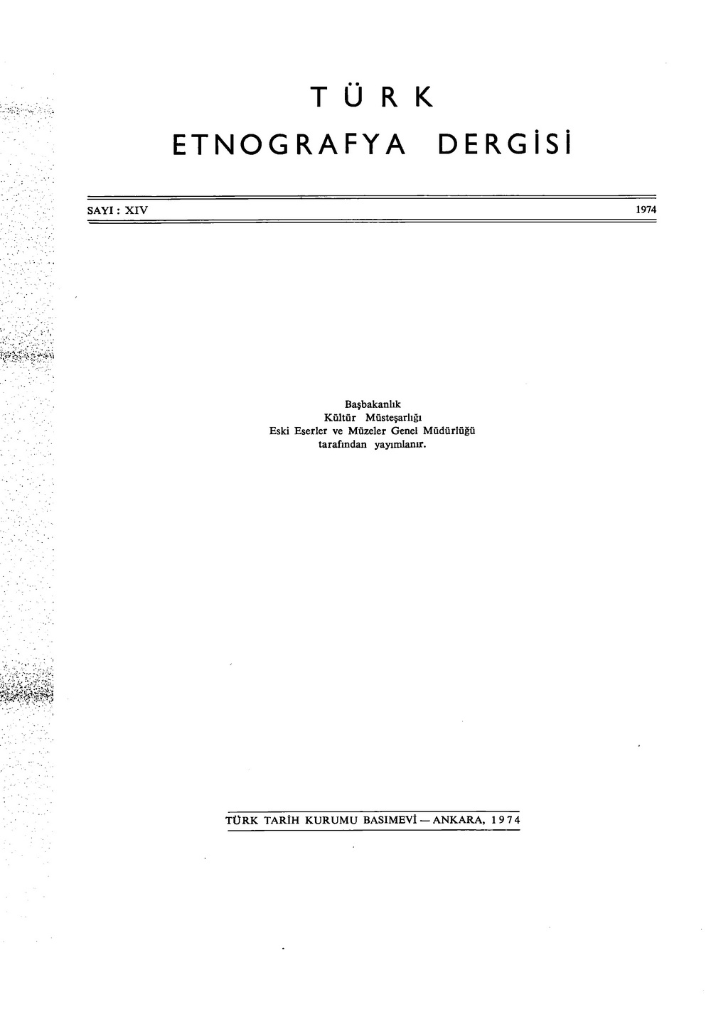 * Dergi Adı: Türk Etnoğrafya Dergisi [*] * Basım Tarihi: 1974 * Sayı: 14 * Arşivimizde Mevcut Mu? : Yok |