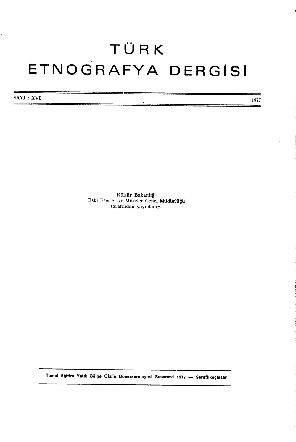 * Dergi Adı: Türk Etnoğrafya Dergisi [*] * Basım Tarihi: 1977 * Sayı: 16 * Arşivimizde Mevcut Mu? : Yok |