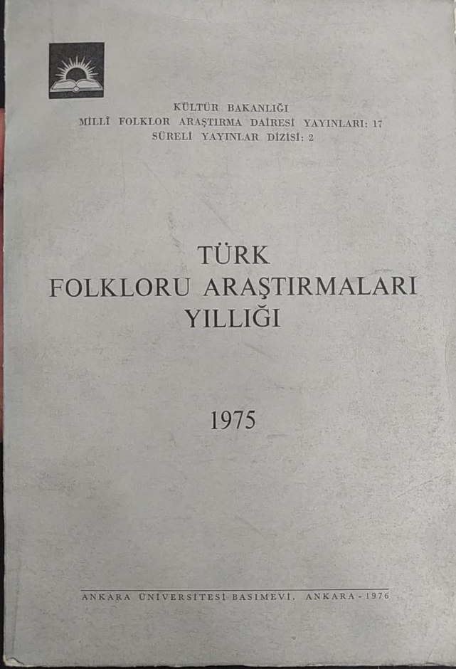 * Kitap Adı : Türk Folkloru Araştırmaları Yıllığı - 1975 * Yayınevi : Milli Folklor Araştırma Dairesi Yayınları * Yazar : Komisyon * Basım Yılı : 1976 * Basım Yeri : Ankara * Toplam Sayfa : 312 * Yayın No : 10 * Dizi Adı : Süreli Yayınlar Dizisi * Dizi No : 2 * Matbaa : Ankara Üniversitesi Basımevi * Ebat : 16x24 * Fiyatı : 25 Lira * Arşiv : Var