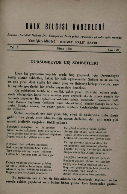 * Dergi Adı: Halk Bilgisi Haberleri * Basım Tarihi: Nisan 1938 * Yıl: 7 * Sayı: 78 * Not: İBB Atatürk Kitaplığı`ndan alınmıştır. * Arşivimizde Mevcut Mu? : Yok |