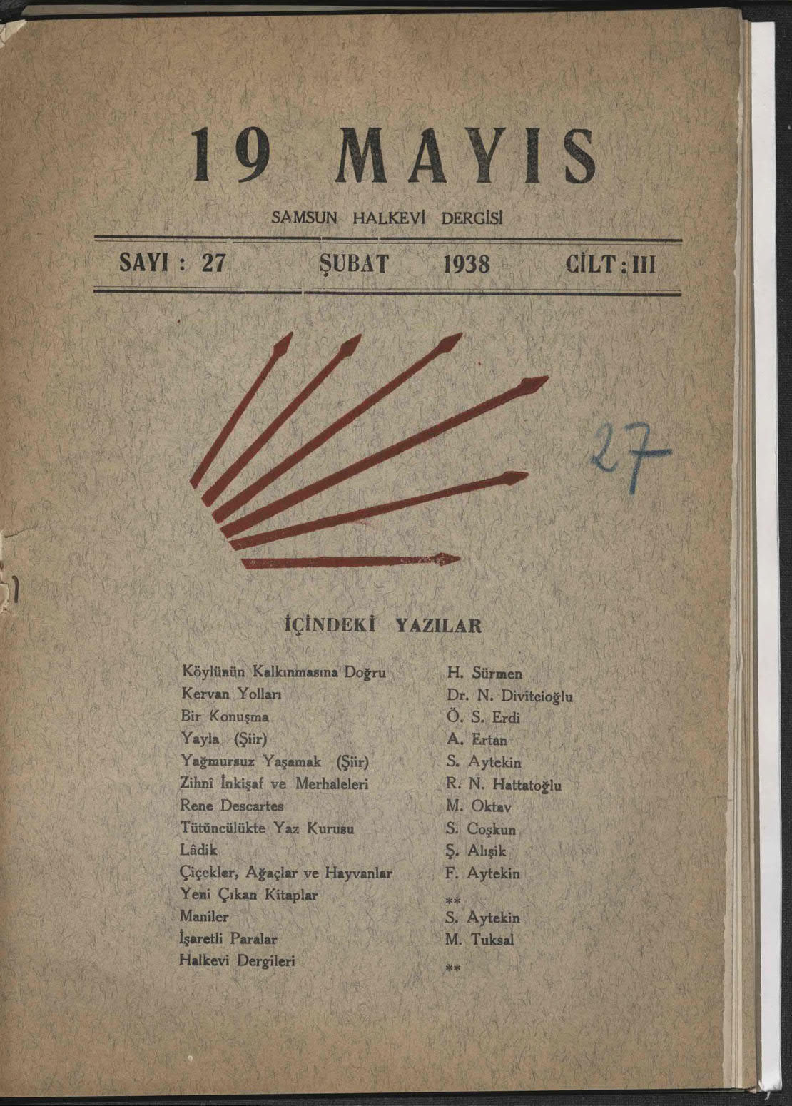Dergi Adı: 19 Mayıs (Samsun Halkevi Dergisi)