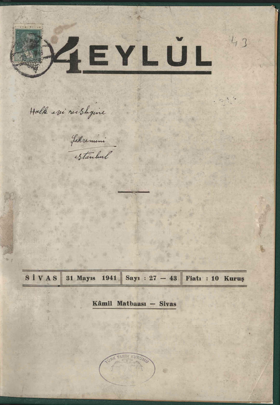 Dergi Adı: 4 Eylül (Sivas Halkevi Dergisi)