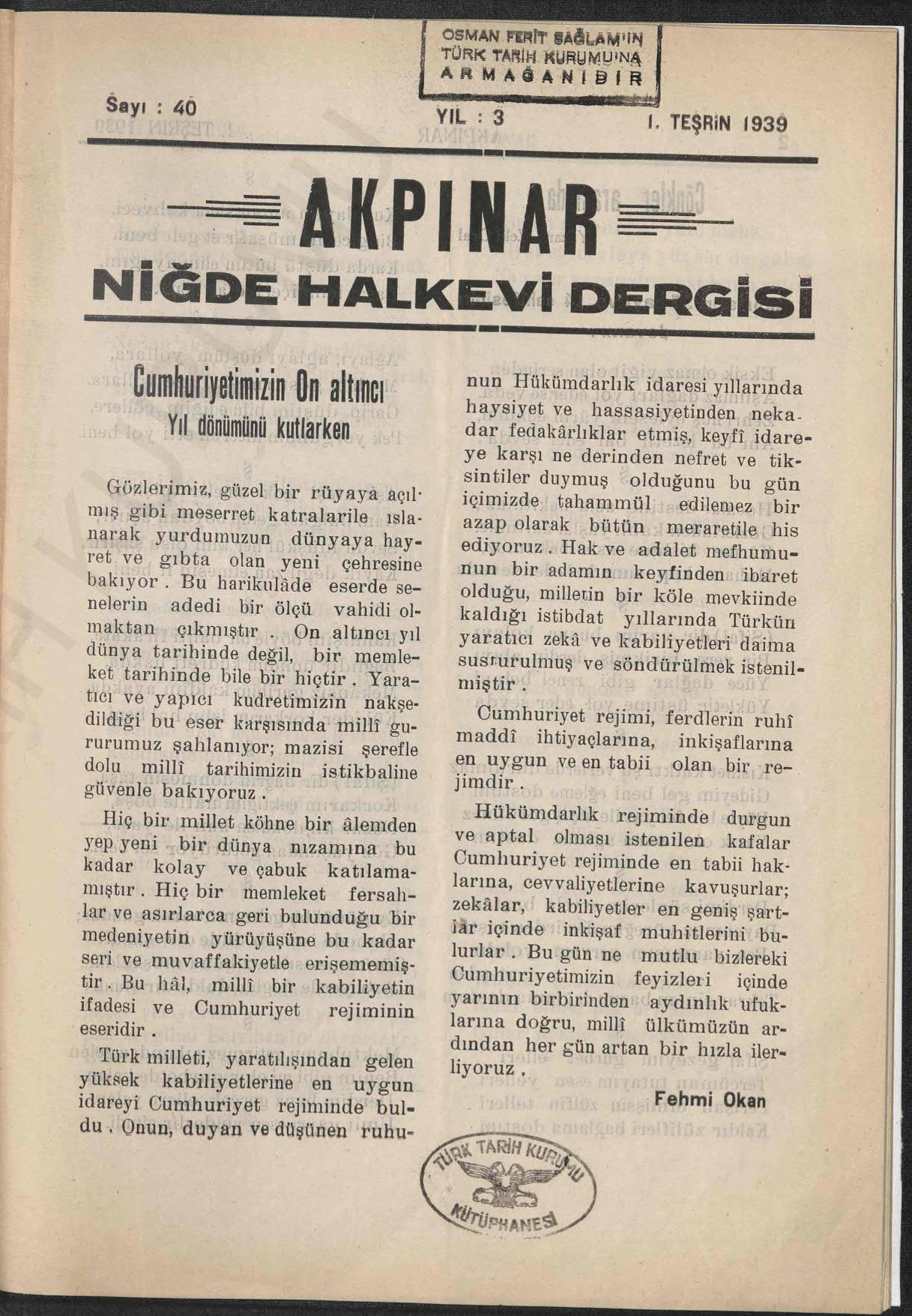 Akpınar (Niğde Halkevi Dergisi)
