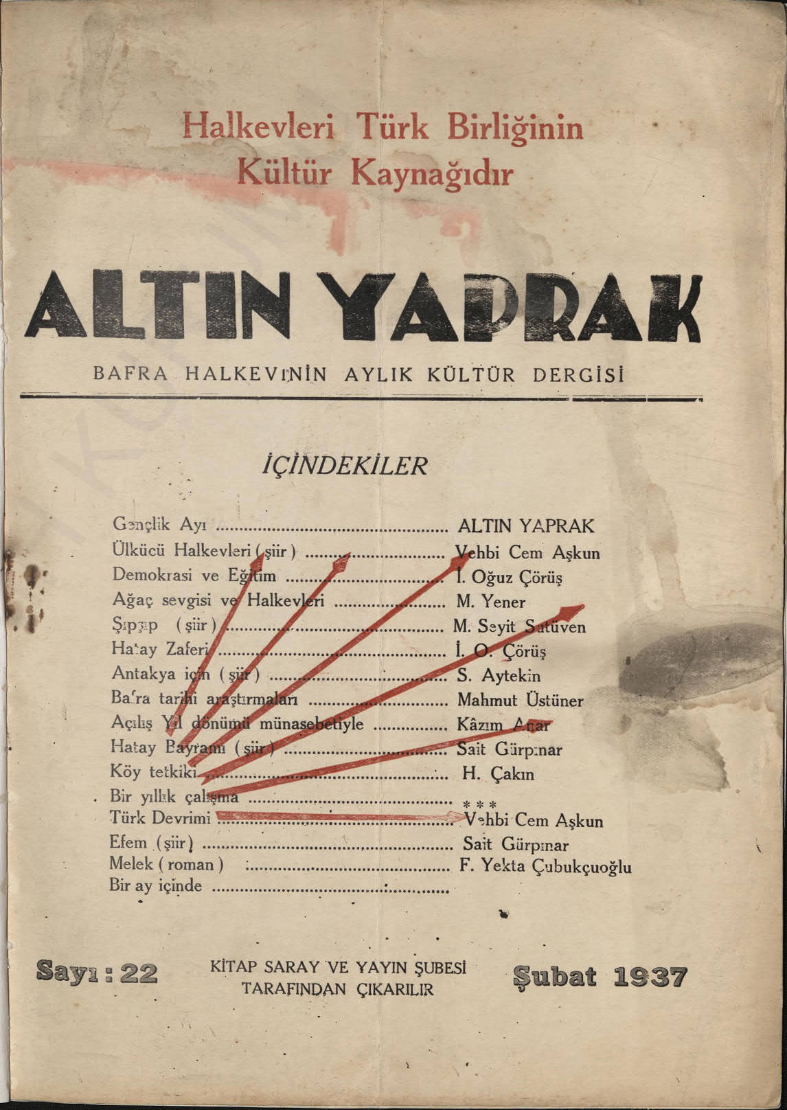 Dergi Adı: Altın Yaprak (Bafra Halkevi Dergisi)