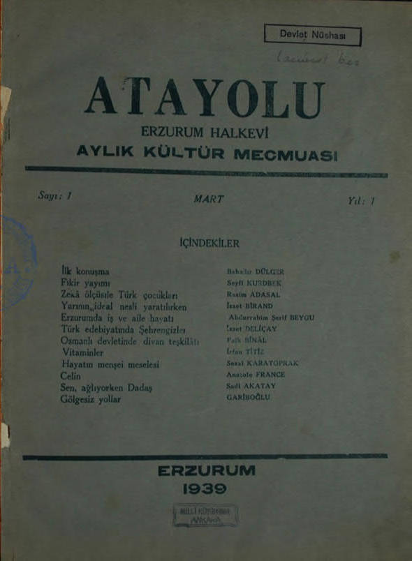 Atayolu (Erzurum Halkevi Dergisi) [*]