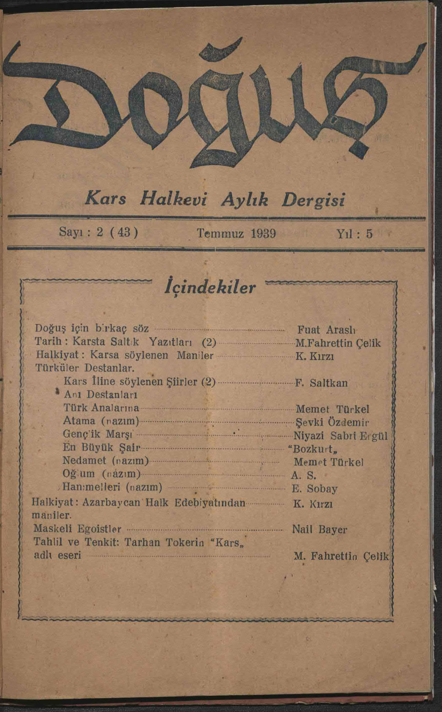 Dergi Adı: Doğuş (Kars Halkevi Dergisi)