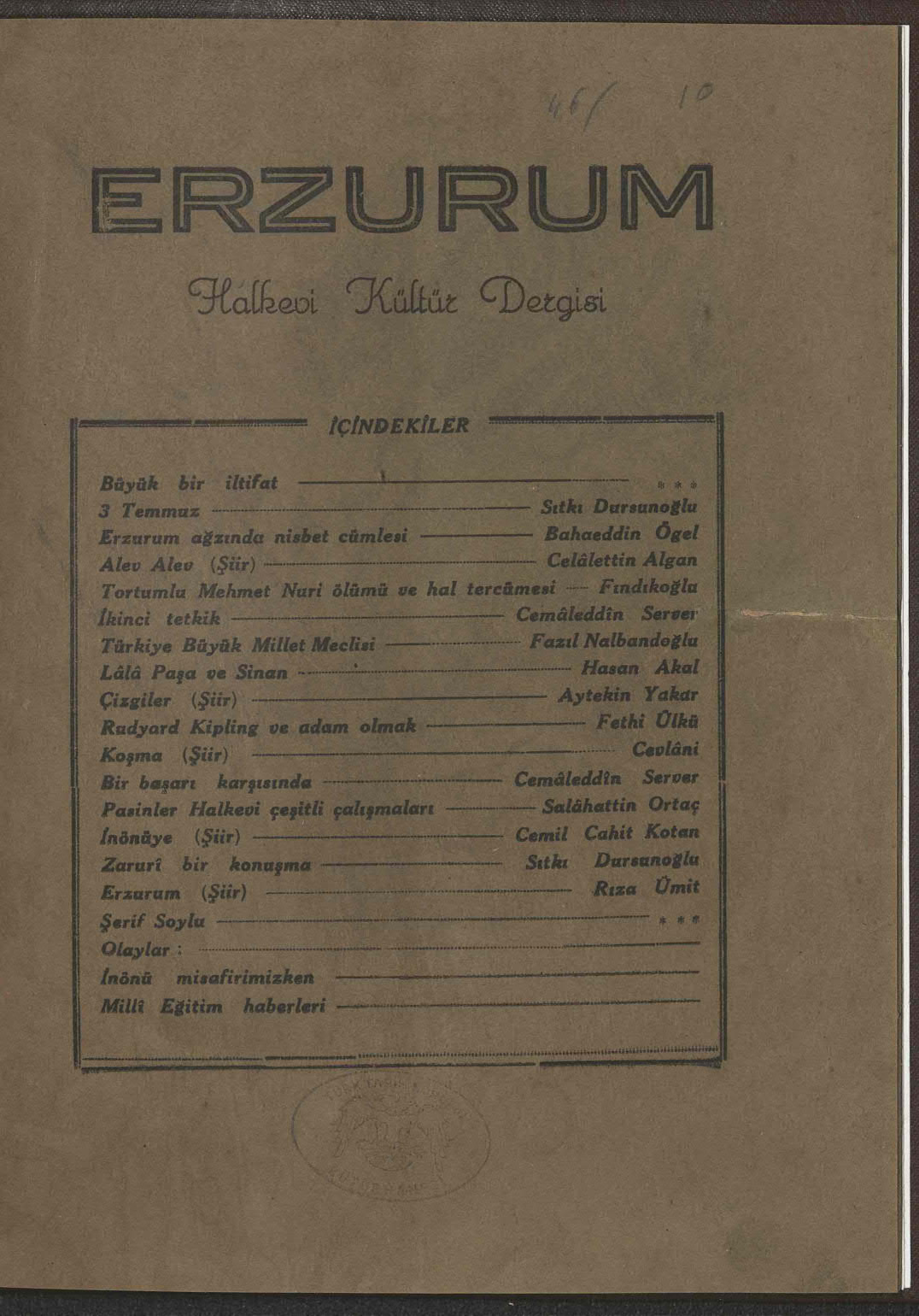 Dergi Adı: Erzurum (Erzurum Halkevi Dergisi)