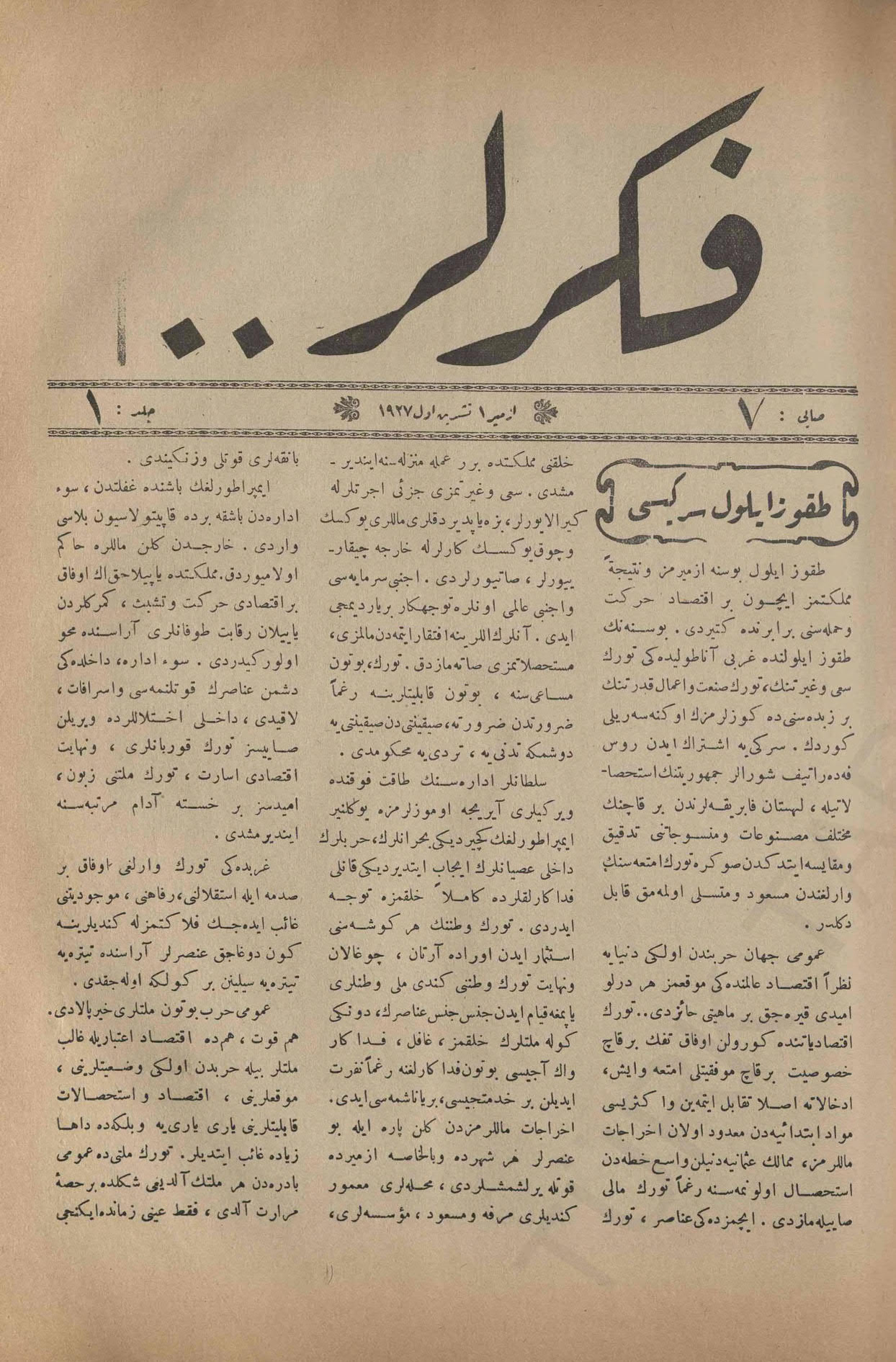 Basım Tarihi: Teşrin-i evvel 1927