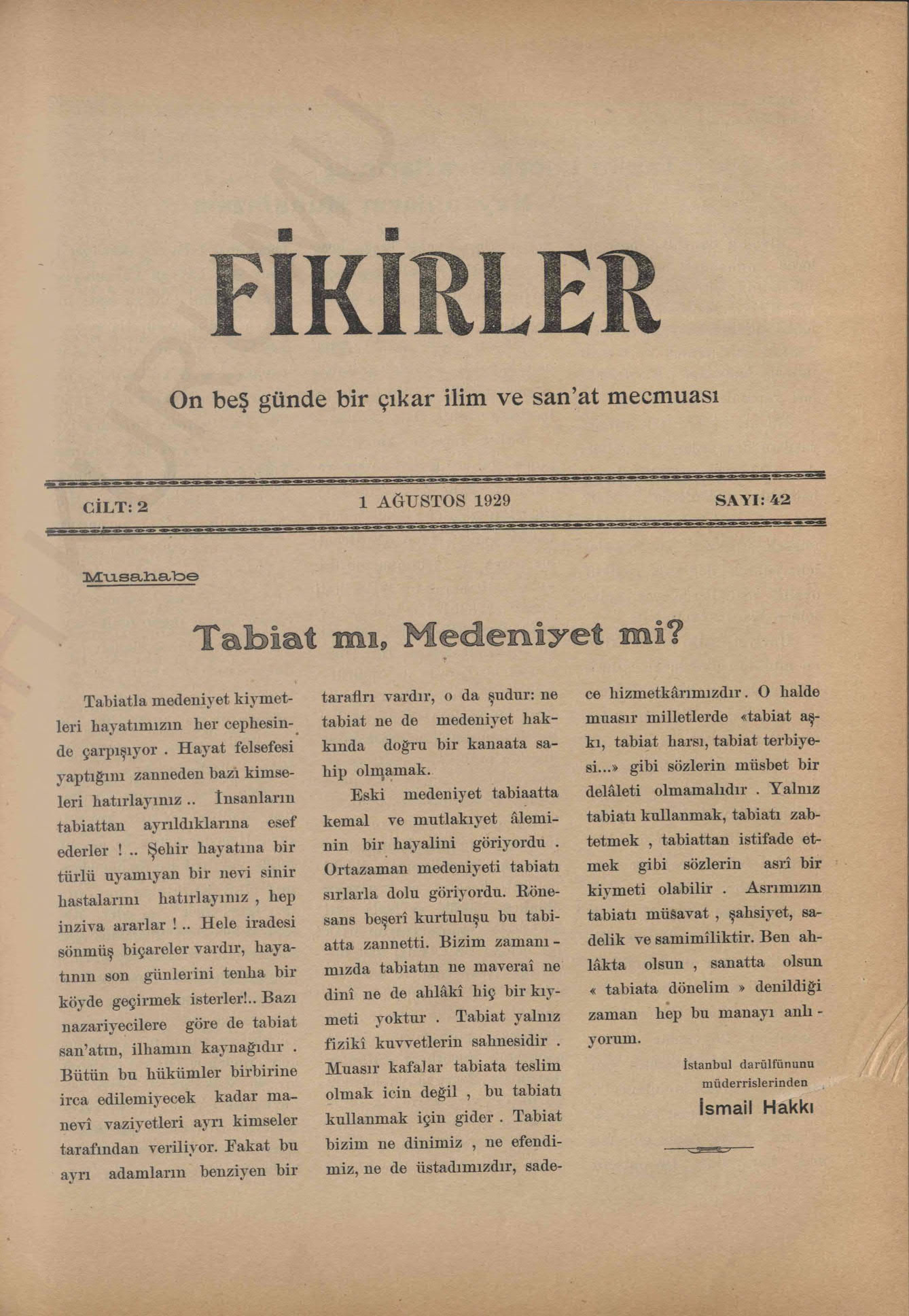 Dergi Adı: Fikirler (İzmir Halkevi Dergisi)