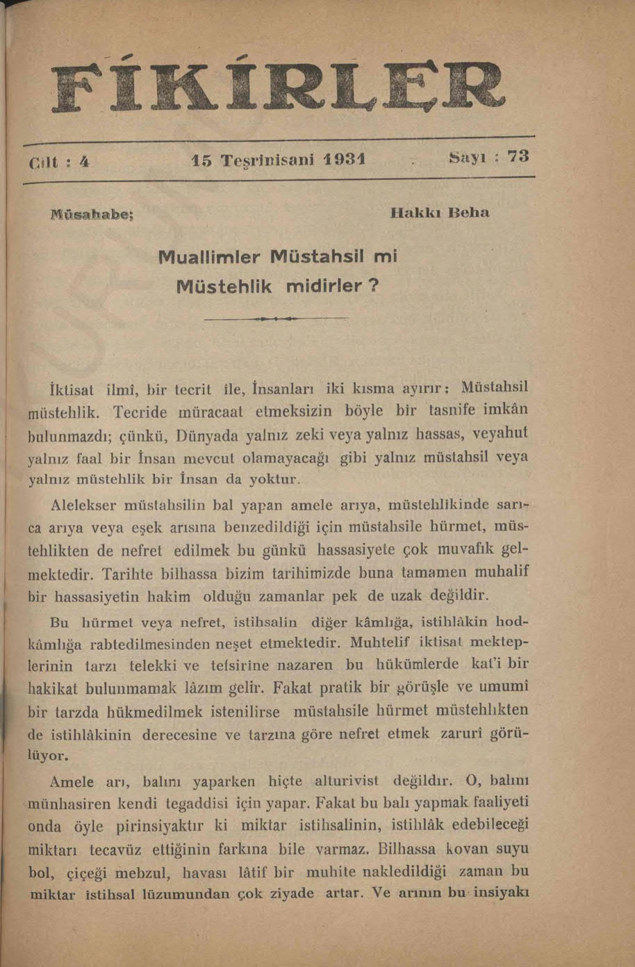 Dergi Adı: Fikirler (İzmir Halkevi Dergisi)