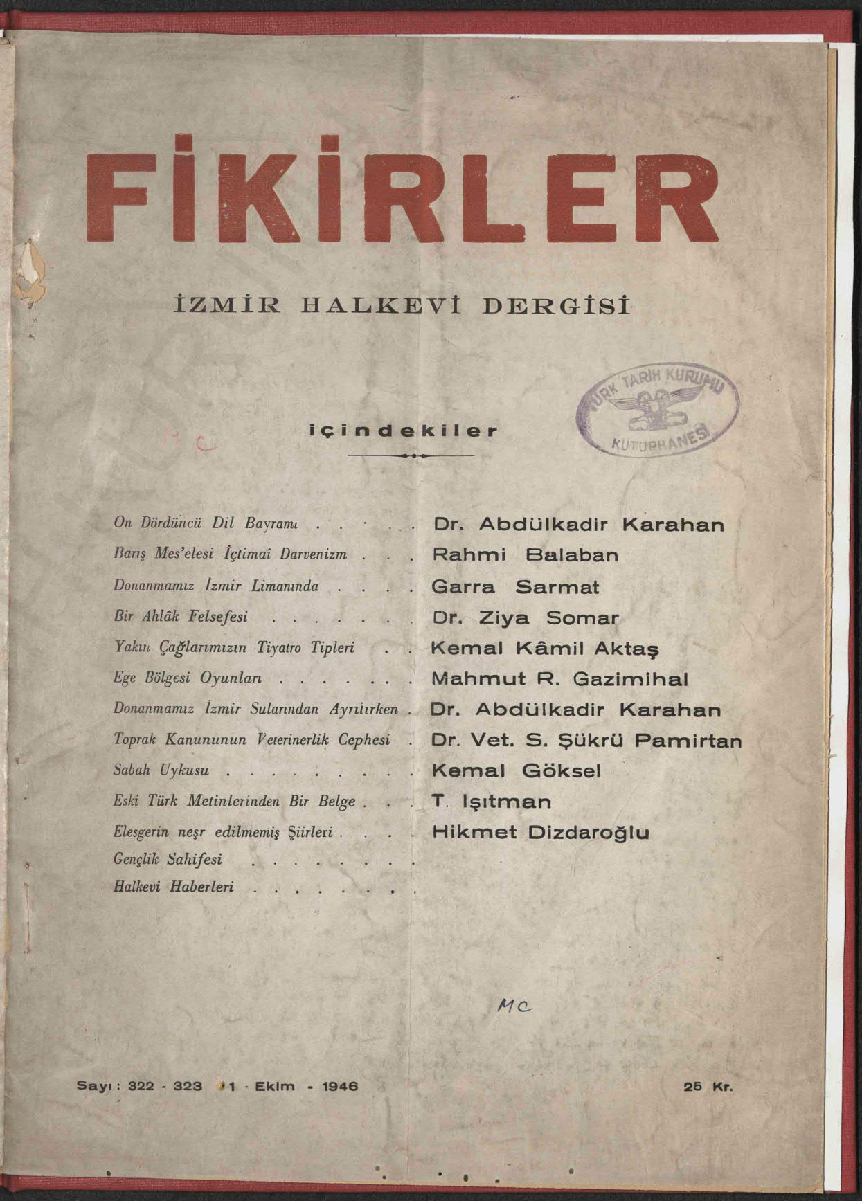 Dergi Adı: Fikirler (İzmir Halkevi Dergisi)
