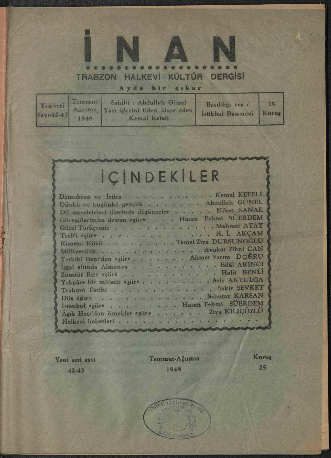 İnan - Yeni Seri (Trabzon Halkevi Dergisi)