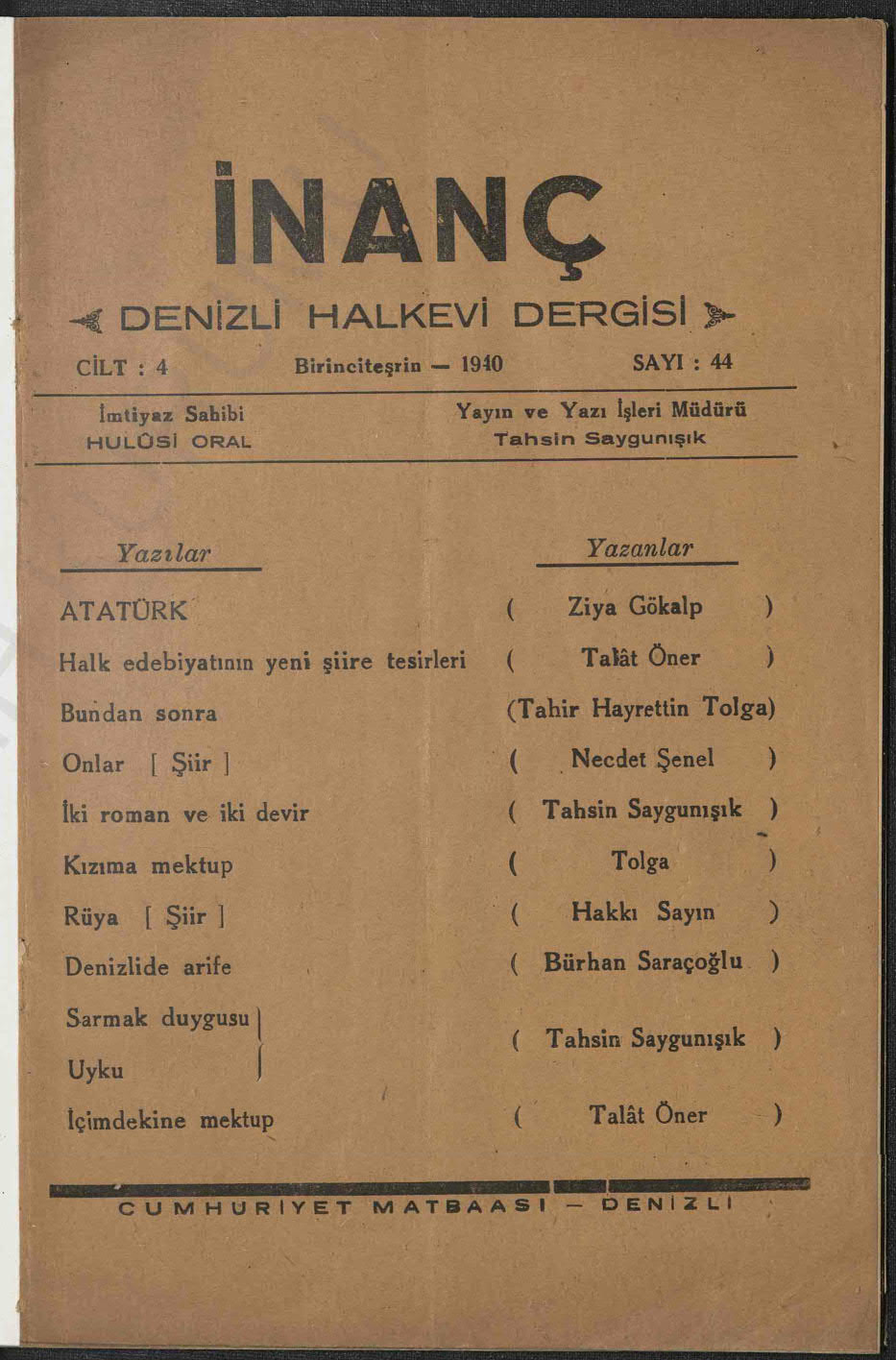 Dergi Adı: İnanç (Denizli Halkevi Dergisi)