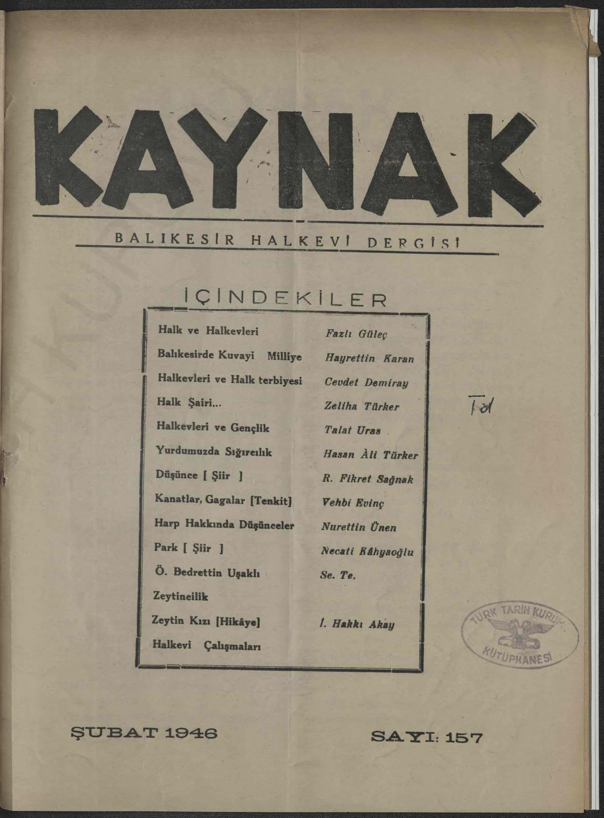 Kaynak (Balıkesir Halkevi Dergisi)