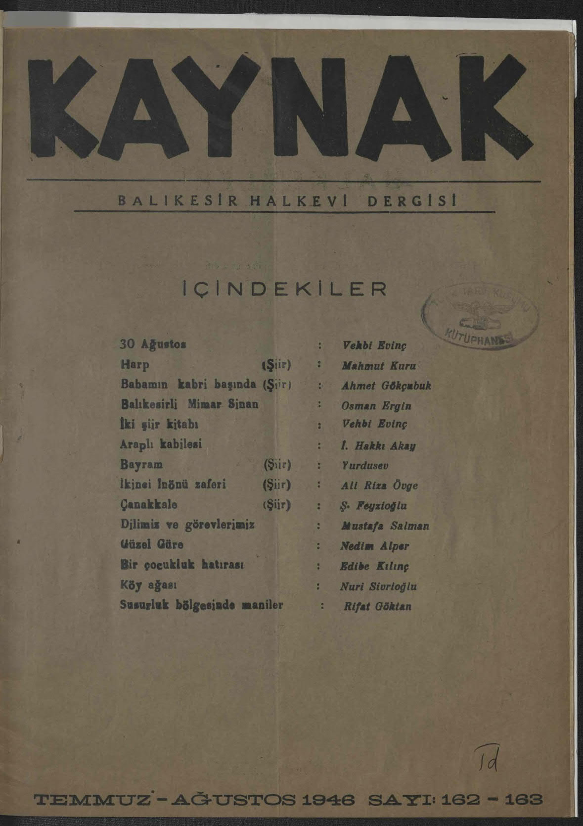 Kaynak (Balıkesir Halkevi Dergisi)