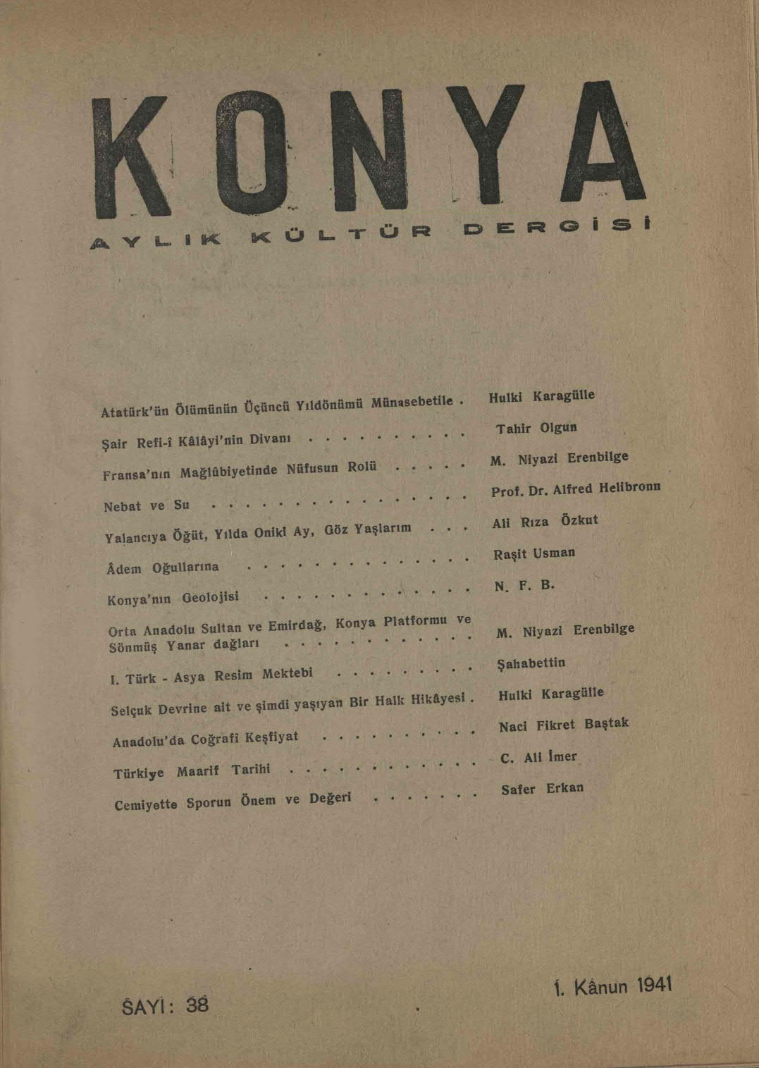 Dergi Adı: Konya (Konya Halkevi Dergisi)