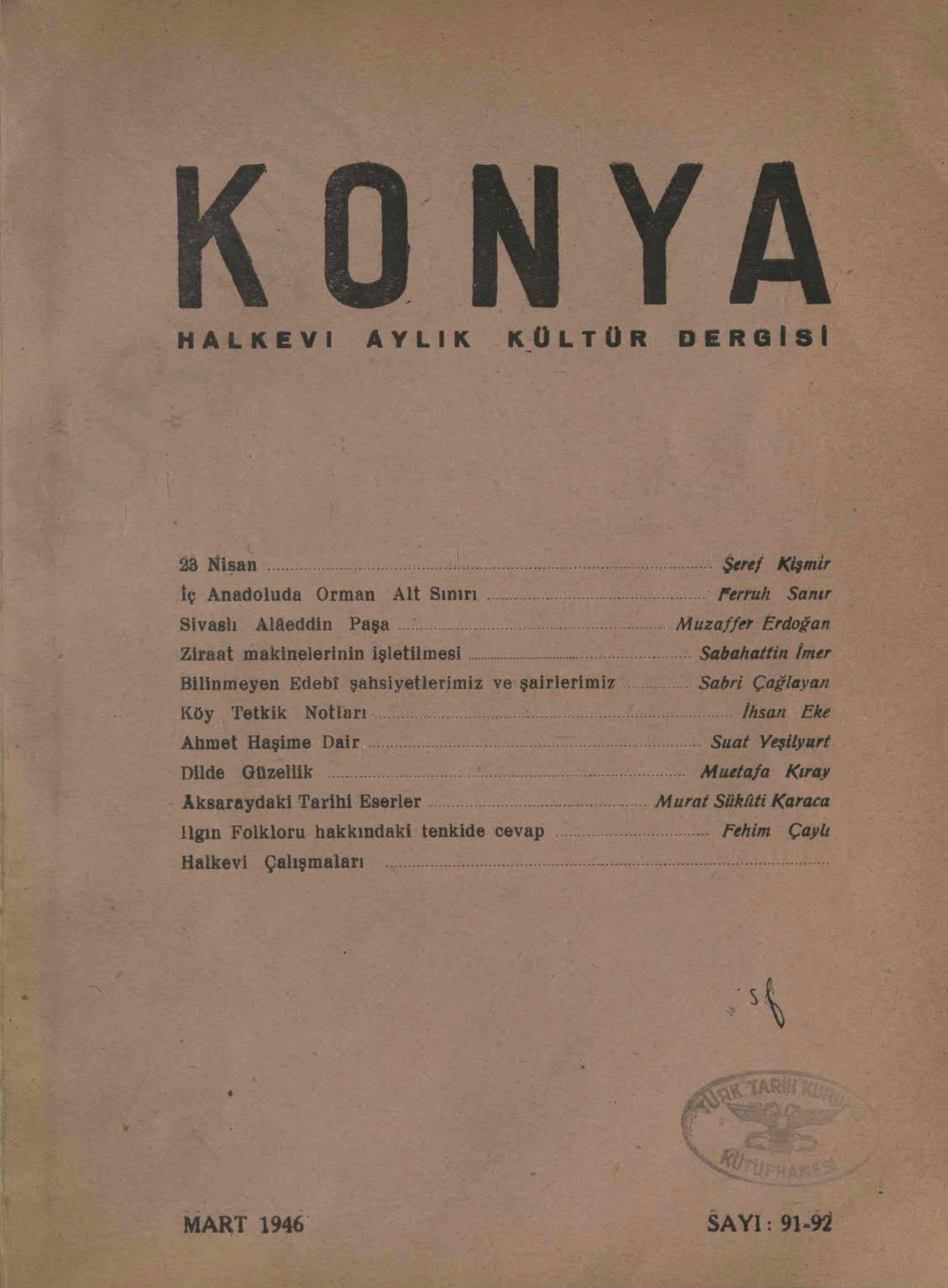 Dergi Adı: Konya (Konya Halkevi Dergisi)