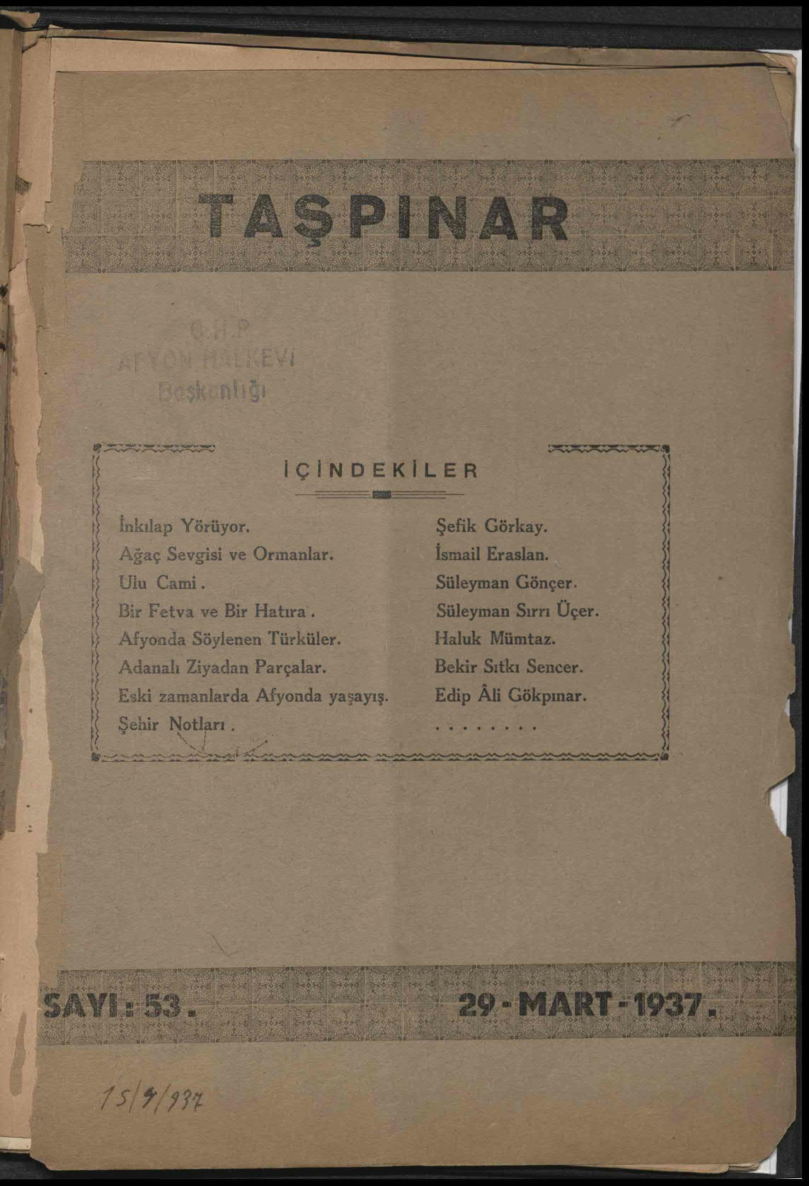 Taşpınar (Afyonkarahisar Halkevi Dergisi)
