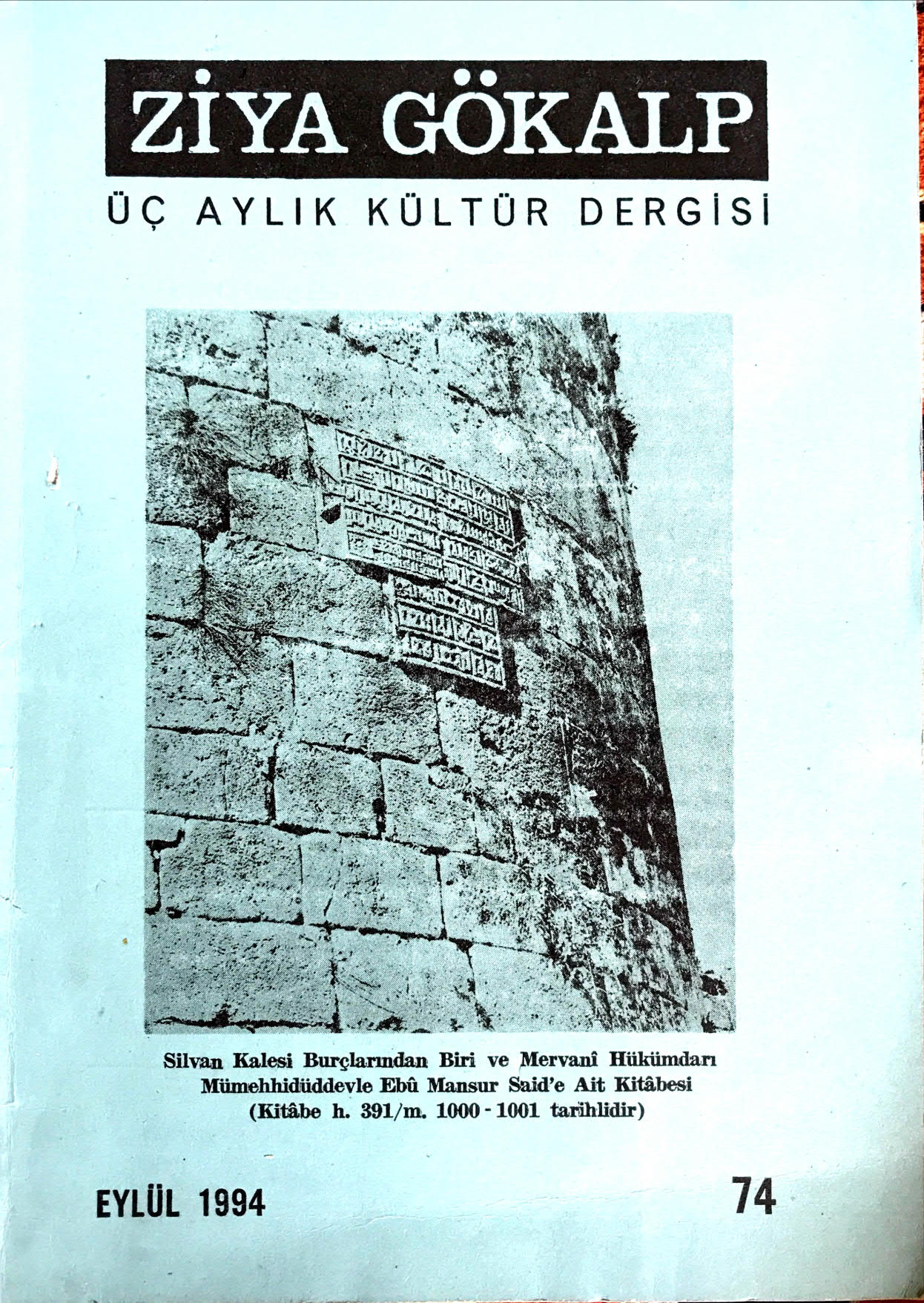 * Dergi Adı: Ziya Gökalp * Basım Tarihi: Temmuz-Eylül 1994 * Cilt: 13 * Sayı: 74 * Arşivimizde Mevcut Mu? : Var |