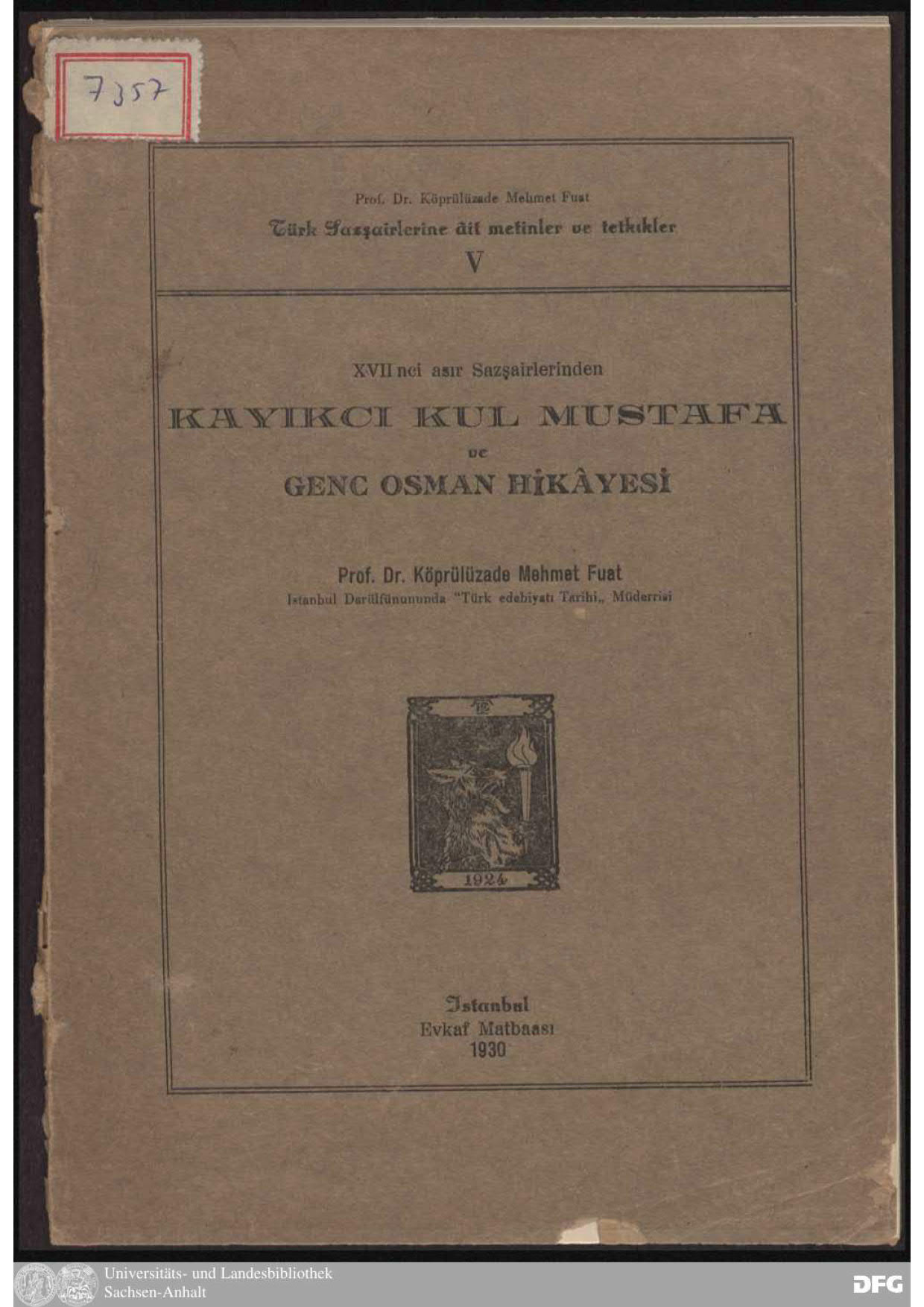 * Kitap Adı : Kayıkcı Kul Mustafa ve Genç Osman Hikâyesi * Yan Başlık : XVII`nci Asır Sazşairlerinden * Yayınevi : Evkaf Matbaası * Yazar : Köprülü,M. Fuat * Basım Yılı : 1930 * Basım Yeri : İstanbul * Toplam Sayfa : 80 * Matbaa : Evkaf Matbaası * Arşiv : Yok